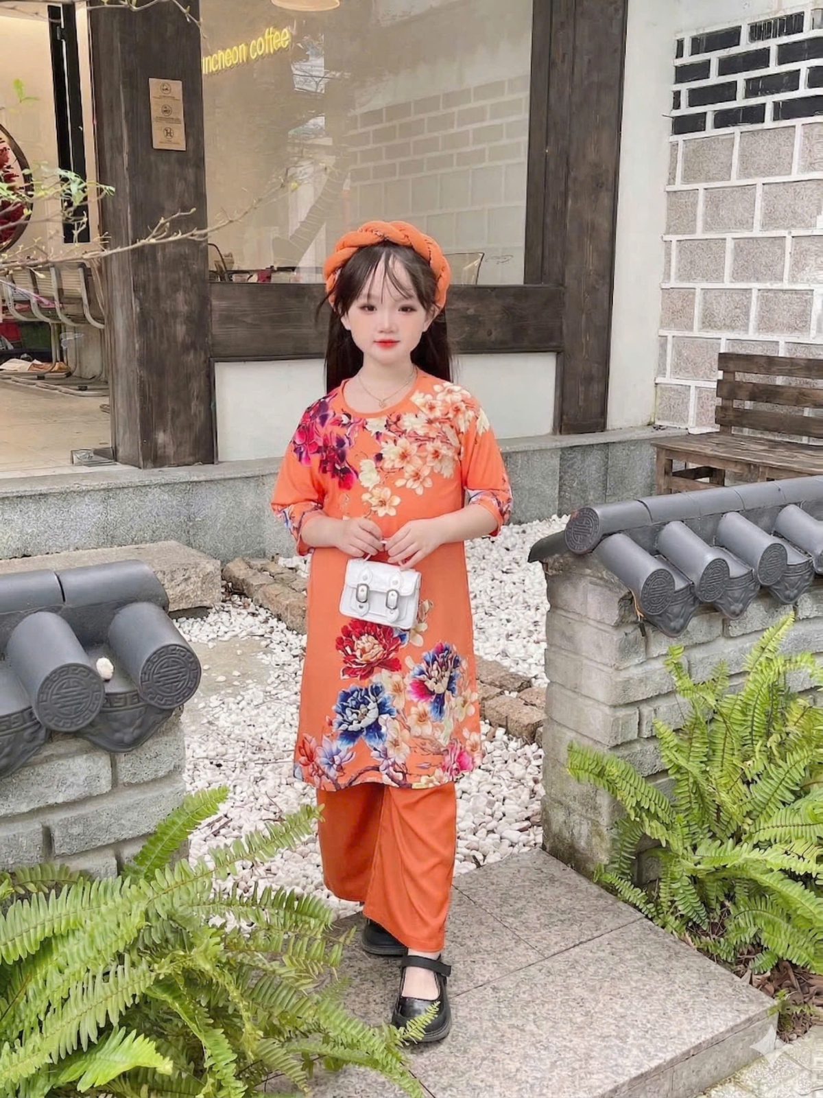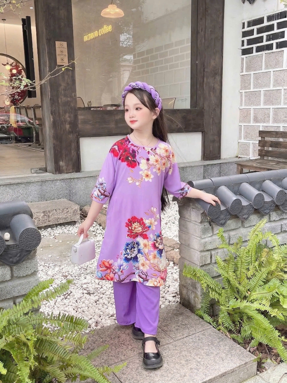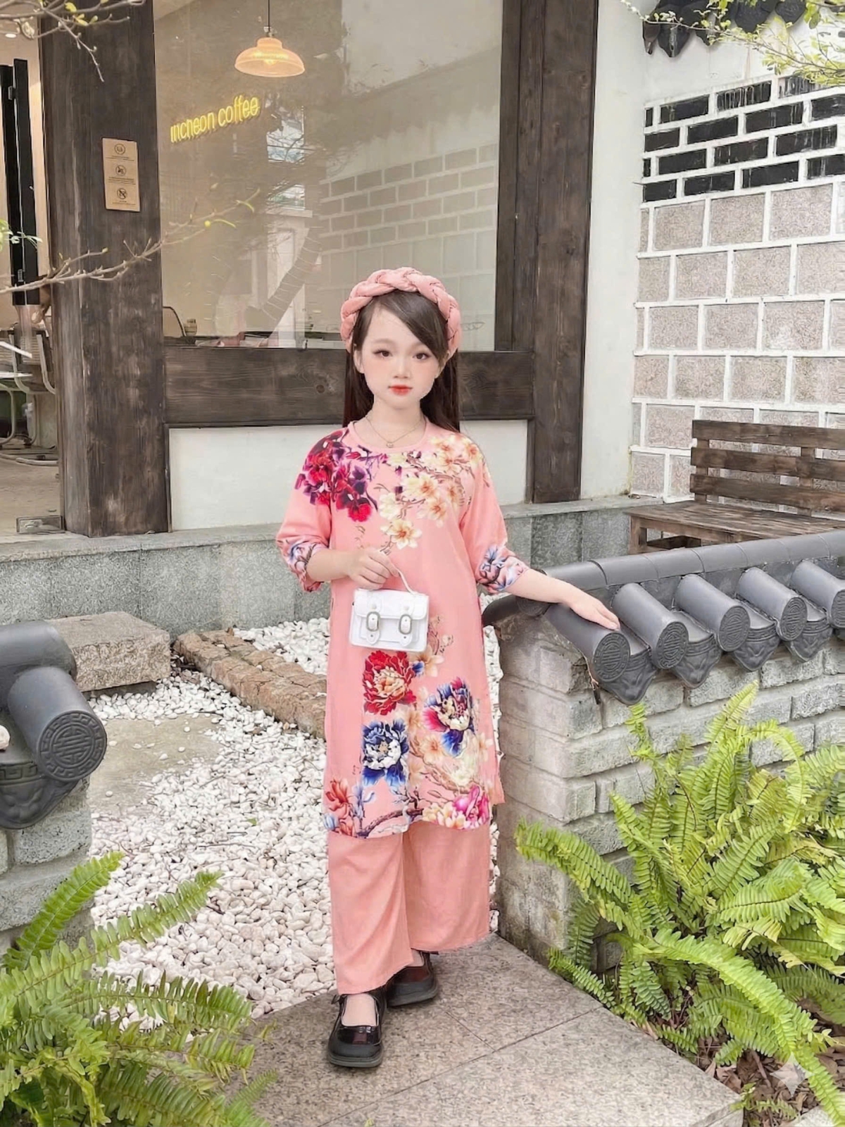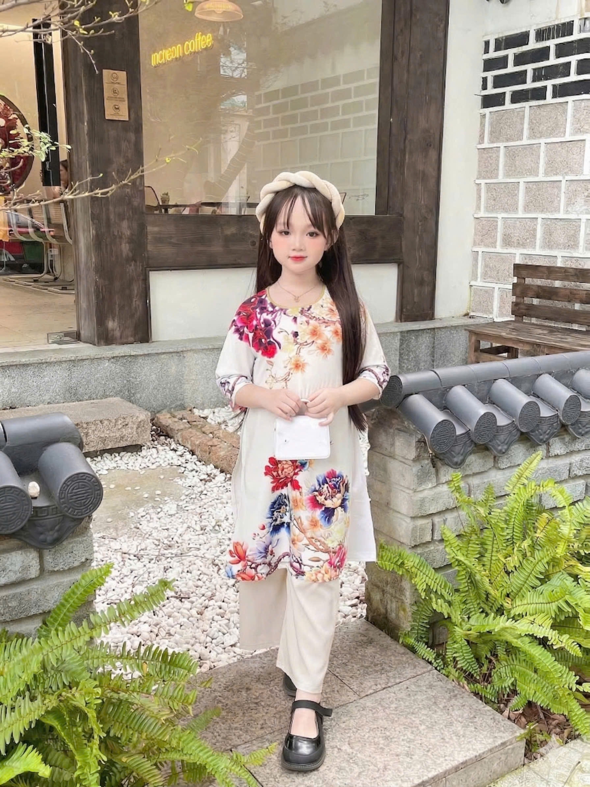 ÁO DÀI BÉ GÁI HOA MẪU ĐƠN