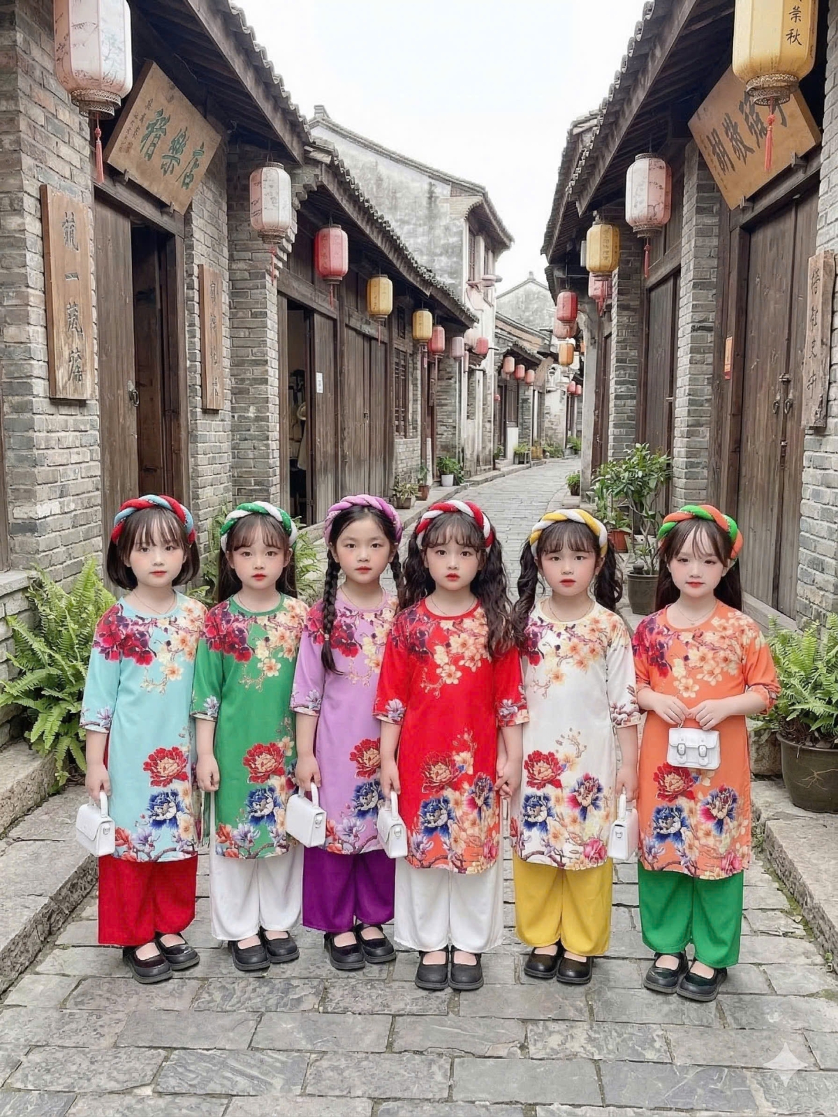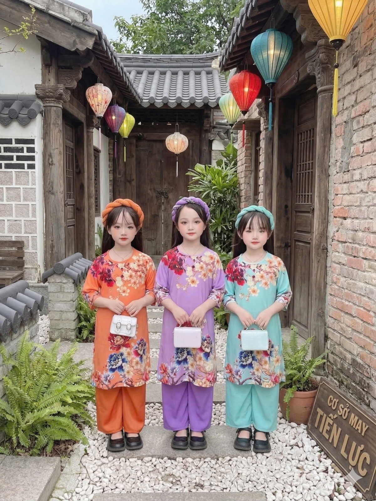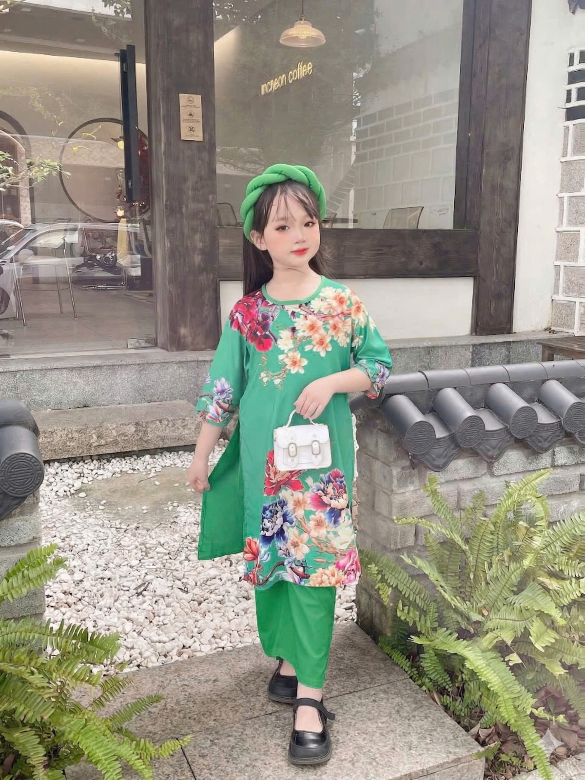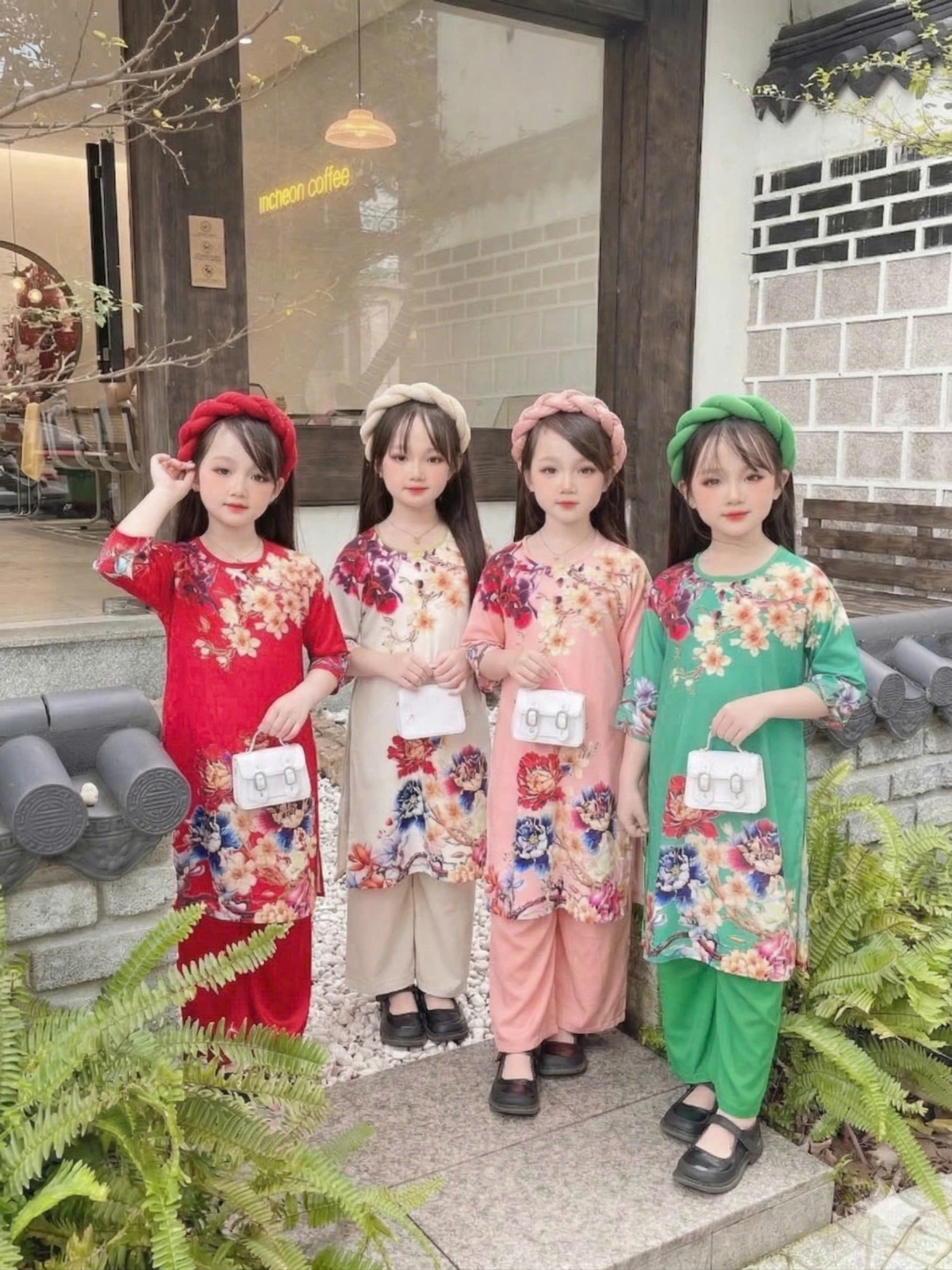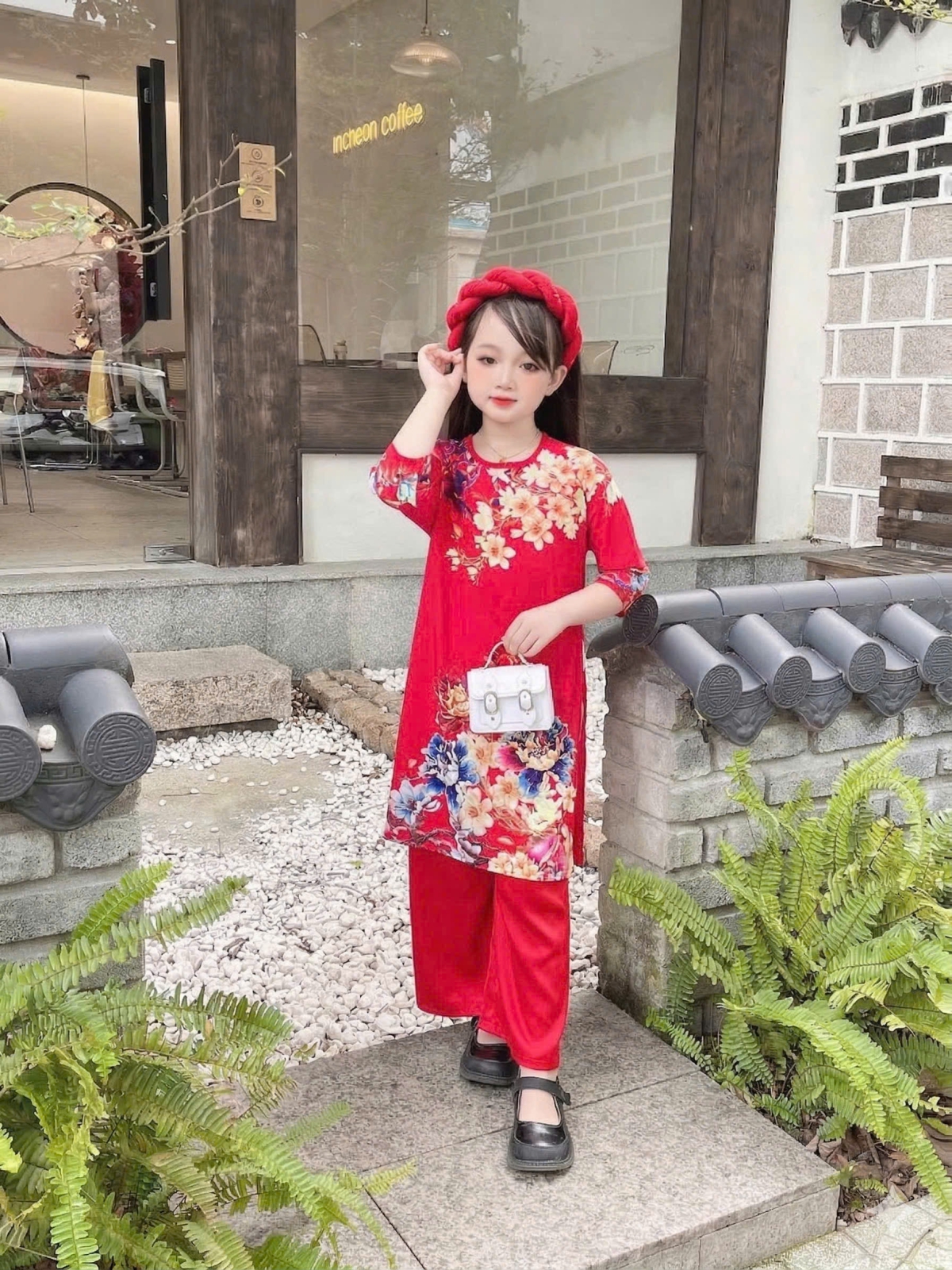 ÁO DÀI BÉ GÁI HOA MẪU ĐƠN