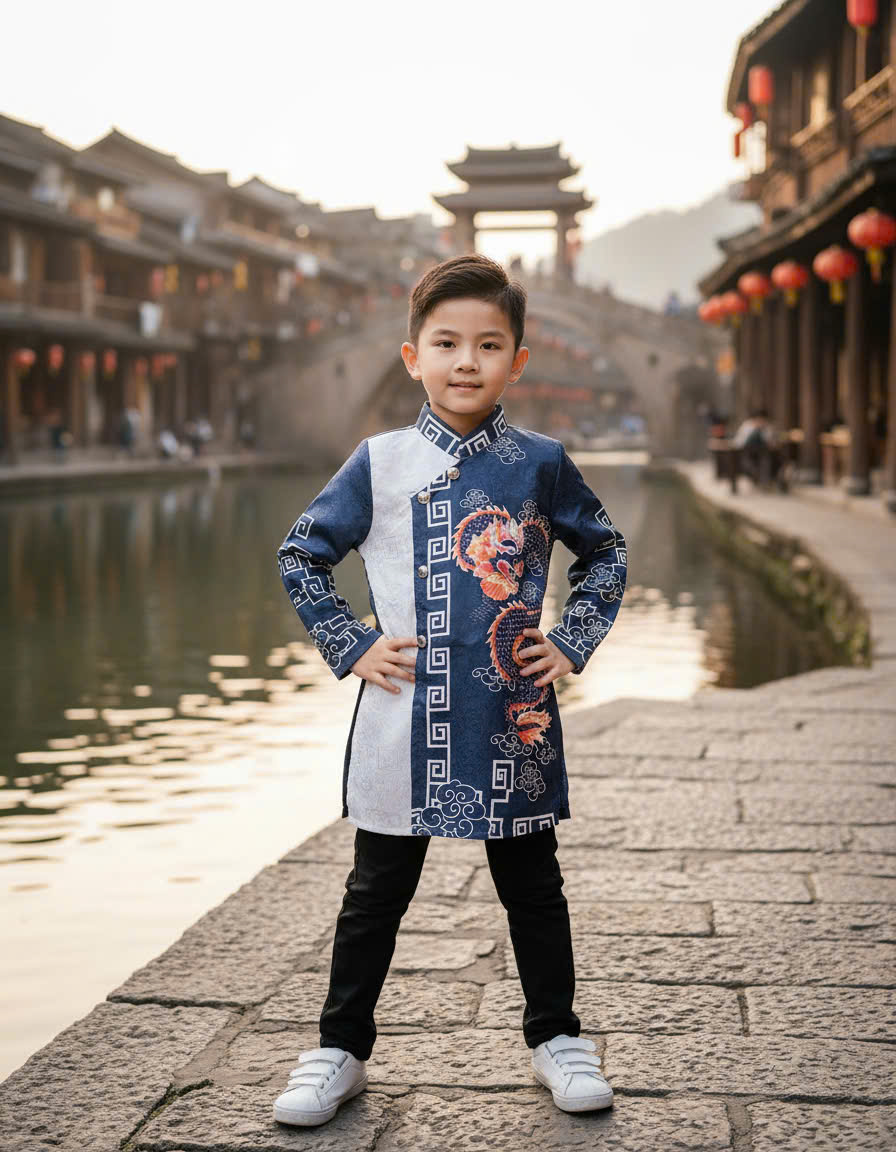 ÁO DÀI CÁCH TÂN HỌA TIẾT RỒNG BAY