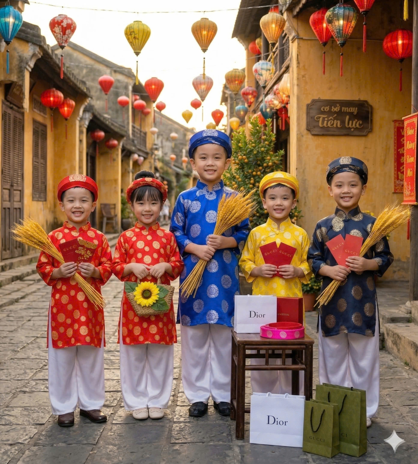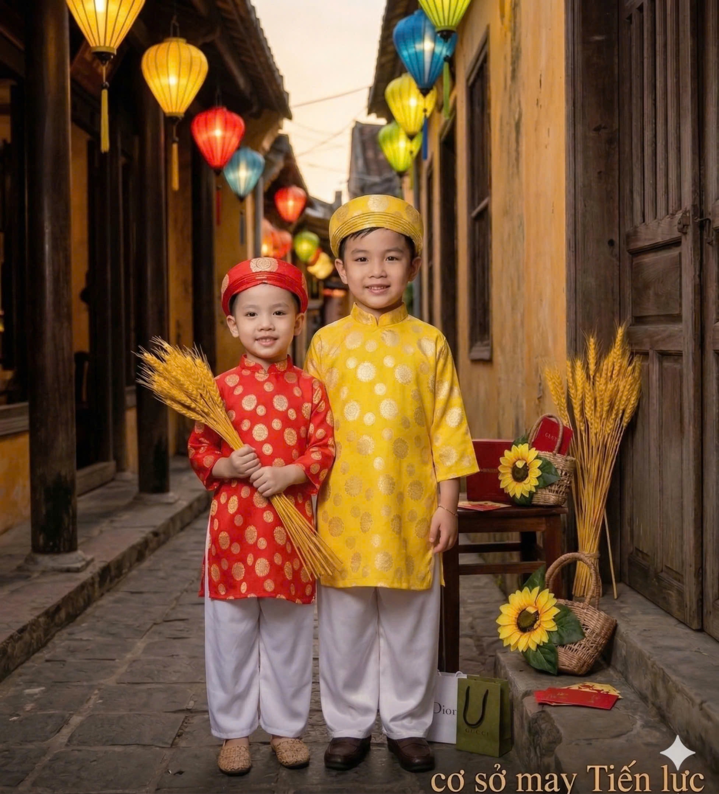 ÁO DÀI GẤM CHO BÉ TRAI VÀ BÉ GÁI