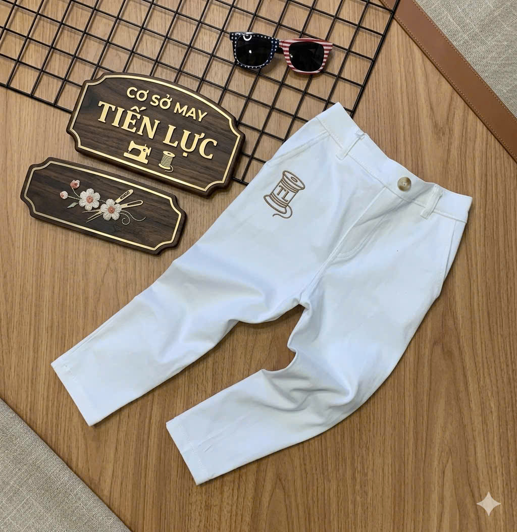Kiểu dáng tinh tế: Quần ống ôm vừa vặn (Slim-fit), tôn dáng nhưng vẫn đảm bảo sự thoải mái. Lưng thun co giãn linh hoạt, giúp bé mặc vào hay cởi ra đều dễ dàng.